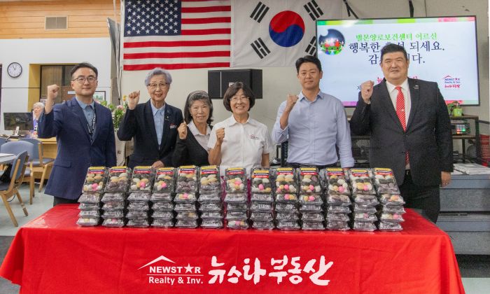 뉴스타 부동산그룹(회장 제니 남)은 추석을 맞아 2일 본사 1층에 위치한 벌몬양로보건센터를 방문, 송편을 전달하고 150여명의 어르신들과 즐거운 시간을 가졌다. 제니남 회장은 "항상 건강하고 풍요롭고 행복한 추석이 되길 바란다”며 인사를 전했다. 뉴스타부동산그룹은 고 남문기 회장이 매년 명절마다 어르신들을 찾아 감사의 마음을 전했던 전통을 이어가고 있다. 왼쪽부터 이동수 벌몬양로센타 디렉터, 경스데렛, 정영선 에이전트, 제니 남 회장, 서지오 성 사장, 알렉스 남 사외 고문.
