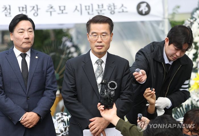 박경호 변호사 특검 앞 분향소서 기자회견…"신문조서에 허위 내용"