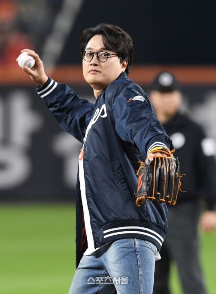 페퍼톤스의 이장원이 대전 한화생명볼파크에서 열린 2025 KBO리그 삼성과 한화의 플레이오프 5차전에 앞서 시구를 하고 있다. 2025 10. 24.
